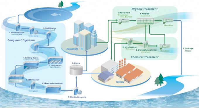 Each process at treatment plant: from reservoir to treated water, distribution system